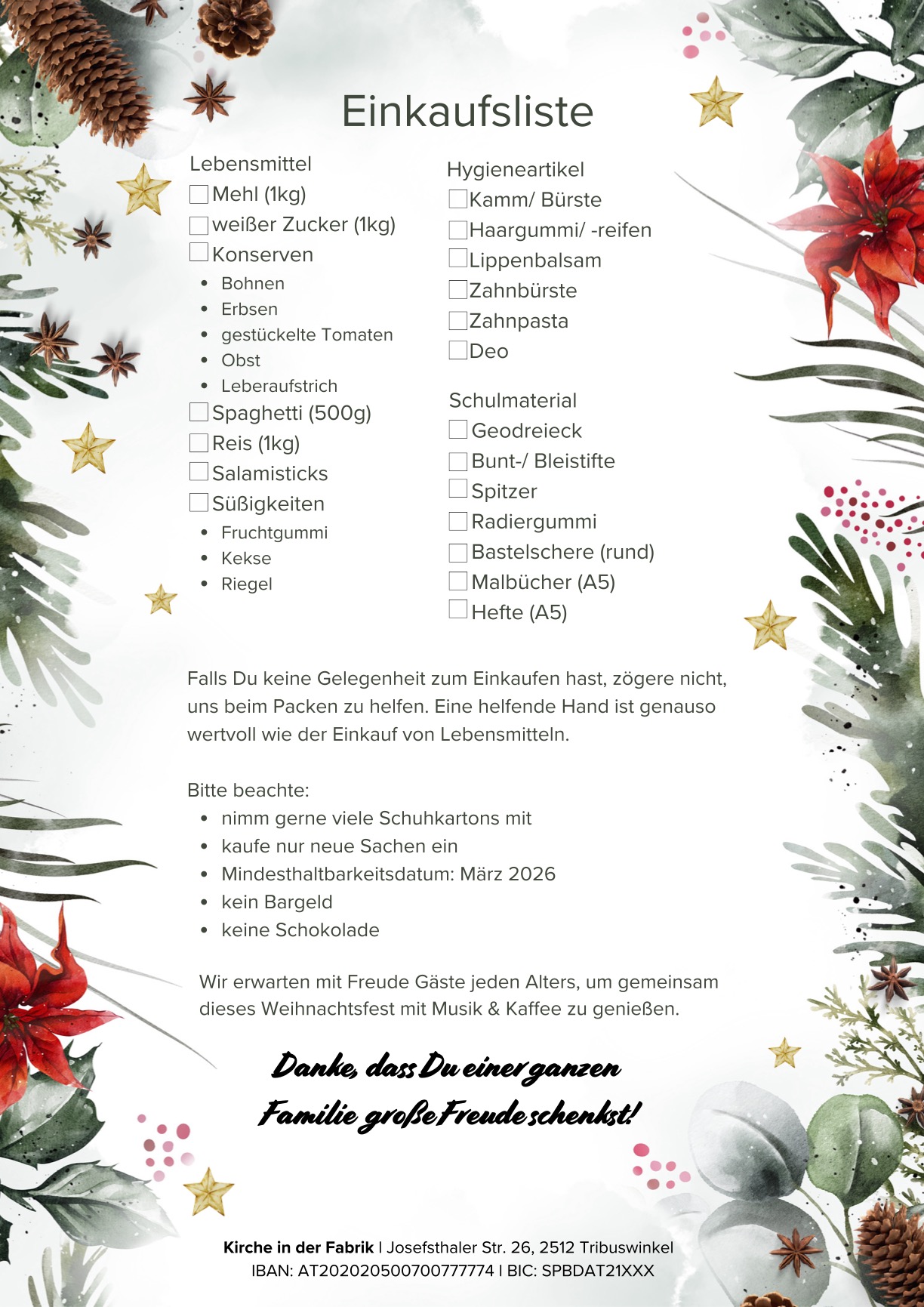 Ob Sie Spenden (siehe Flyer), Schuhkartons oder einfach Ihre Kraft zum Verpacken der Weihnachtsboxen mitnehmen, wir freuen uns über jede helfende Hand (auch jene von Kindern), die rumänischen Familien in Not ein nettes Weihnachtsfest ermöglichen möchte.
